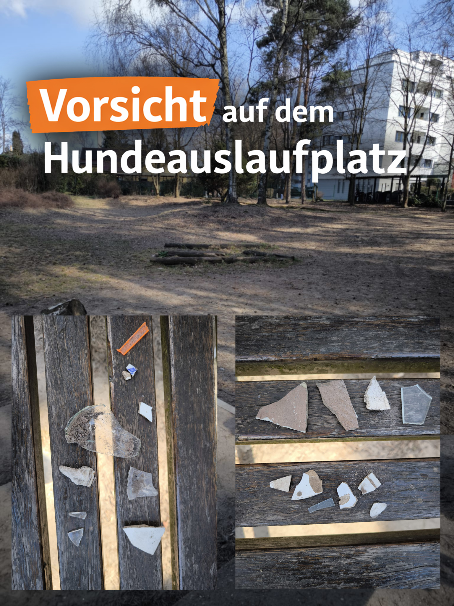 Glasscherben auf Hundeauslaufplatz in der Finsterwalder Straße
