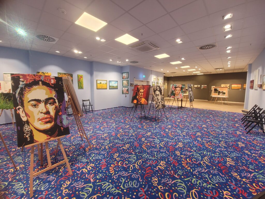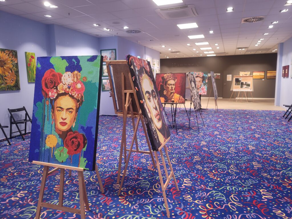 Am 2. April wurde im Kunstraum im Märkischen Zentrum die Sonderausstellung „Hommage an Frida Kahlo“ von Barbara Ellen Speckner eröffnet. Ab 15 Uhr kamen Besucherinnen und Besucher zusammen, um sich die neuen Arbeiten anzusehen und miteinander ins Gespräch zu kommen. Zum Auftakt gab es eine kurze Ansprache. Im Raum standen kleine Snacks und Getränke bereit. Gezeigt werden neue Bilder von Barbara Ellen Speckner, die den Kunstraum für die kommenden Wochen ergänzen. Die Arbeiten sind im Rahmen der Ausstellung frei zugänglich und können während der Öffnungszeiten betrachtet werden.