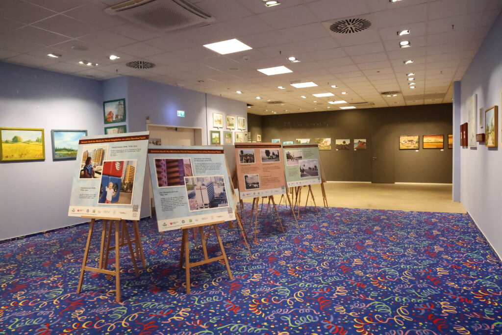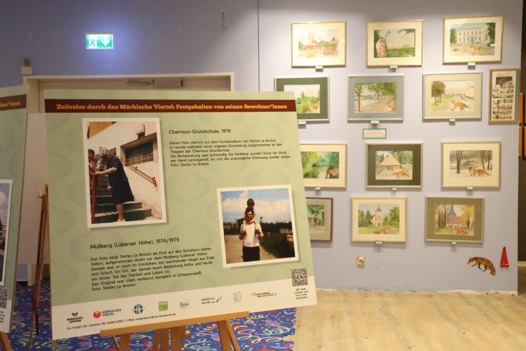 Bis zum 30.4.2026 werden dort Werke aus der Nachbarschaft gezeigt, Malerei, Fotografie, Skulpturen und vieles mehr. Mitgewirkt haben zahlreiche Einrichtungen und Initiativen aus dem Märkischen Viertel, darunter das Netzwerk Märkisches Viertel, FACE-Familienzentrum, BENN im MV, die GESOBAU AG, Albatros Social, das Stadtteilzentrum Ribbeck-Haus, die Chance gGmbH und natürlich wir, die Viertelreporter.