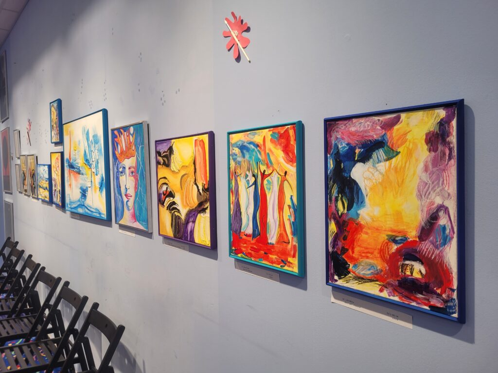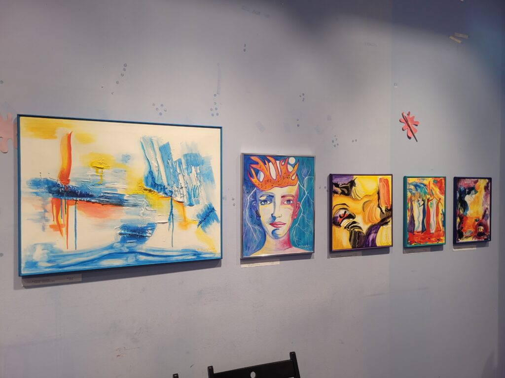 Und dann war da Janey. Sie half ursprünglich nur bei der Organisation mit, bei der Präsentation und Umsetzung der Ausstellung. Doch mit jeder Begegnung, mit jedem Gespräch und jedem Bild wuchs in ihr etwas. Mit einem Schmunzeln erzählte sie, dass sie irgendwann einfach selbst mit dem Malen begonnen habe, wie angesteckt vom „Kunstraum-Virus“. Und sie lachte, als sie meinte, seit der Ausstellung würden im Viertel immer öfter Leinwände und Farben ausverkauft sein. „Bei Action sind die Acrylfarben ständig leer“ und alle im Kunstraum lachten.