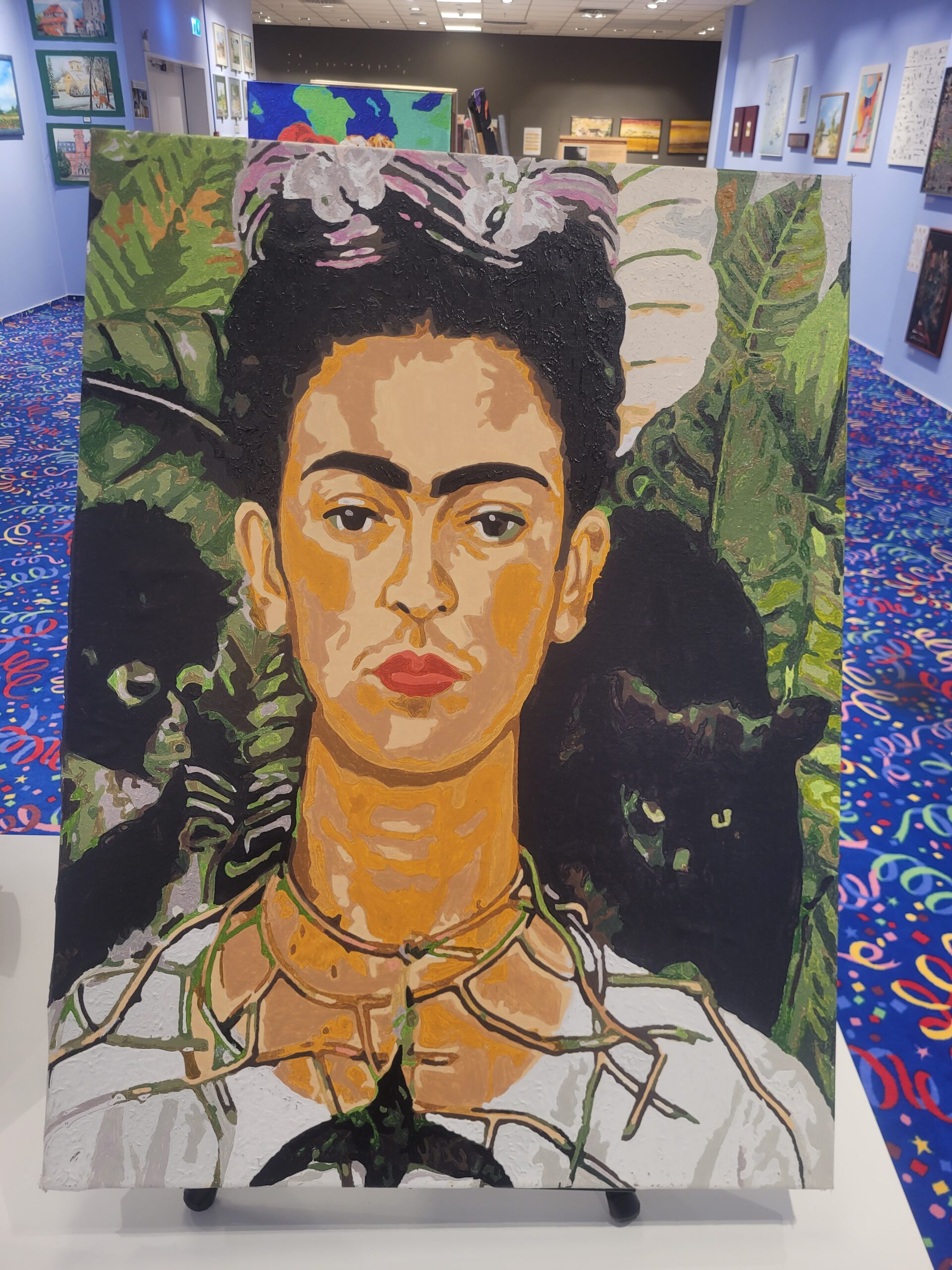 Am 2. April wurde im Kunstraum im Märkischen Zentrum die Sonderausstellung „Hommage an Frida Kahlo“ von Barbara Ellen Speckner eröffnet. Ab 15 Uhr kamen Besucherinnen und Besucher zusammen, um sich die neuen Arbeiten anzusehen und miteinander ins Gespräch zu kommen. Zum Auftakt gab es eine kurze Ansprache. Im Raum standen kleine Snacks und Getränke bereit. Gezeigt werden neue Bilder von Barbara Ellen Speckner, die den Kunstraum für die kommenden Wochen ergänzen. Die Arbeiten sind im Rahmen der Ausstellung frei zugänglich und können während der Öffnungszeiten betrachtet werden.