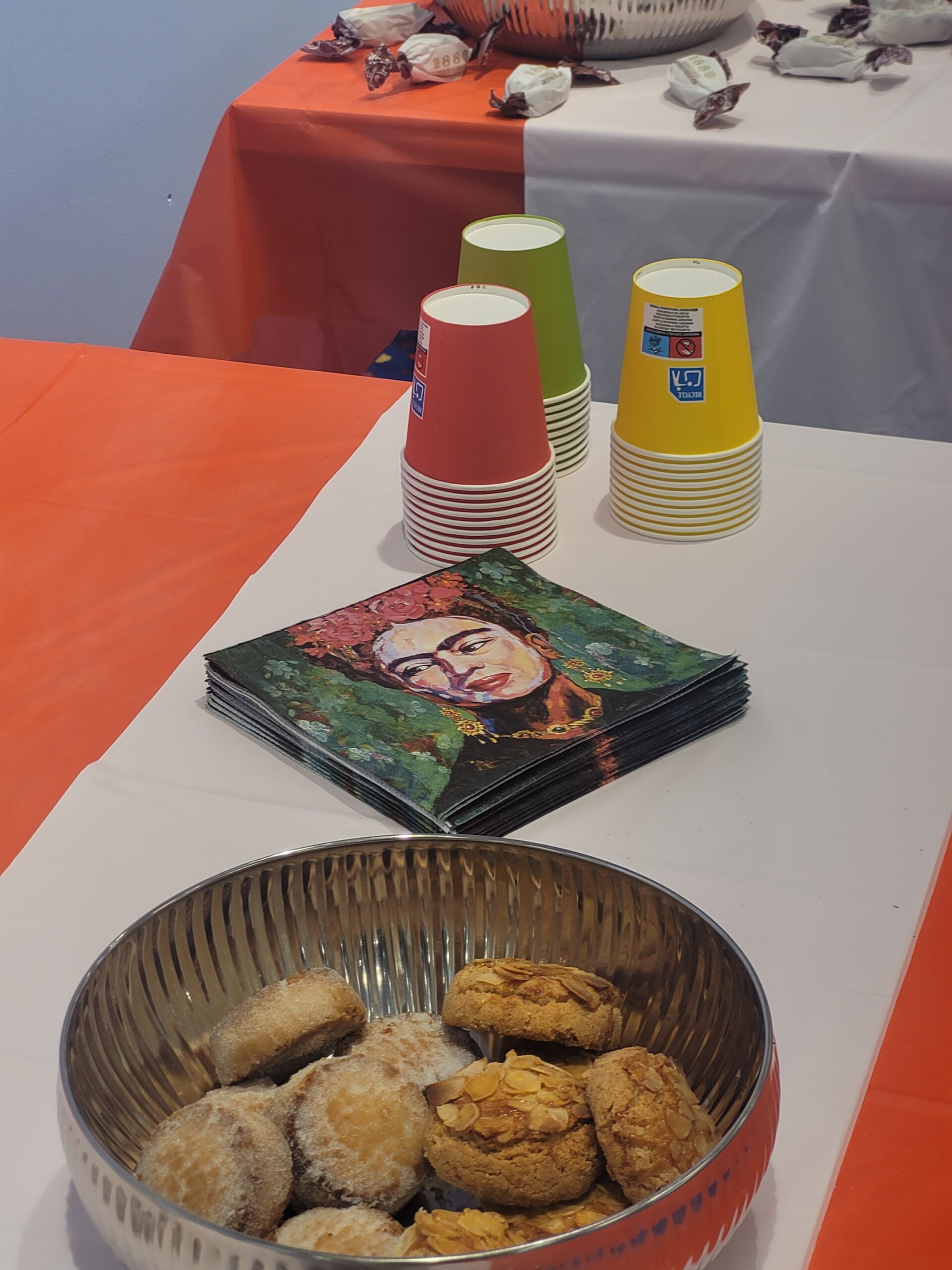 Für das leibliche Wohl sorgte Orient Kitchen aus dem Hallenbad im Märkischen Viertel. Mit Essen und Getränken ließ sich in Ruhe sitzen, erzählen und lachen. Dabei kam auch der kleine Running Gag zur Sprache, dass in manchen Läden rund um das Märkische Zentrum zeitweise Pinsel und Farben knapp wurden. Viele Nachbarinnen und Nachbarn scheinen durch den Kunstraum Lust bekommen zu haben, selbst kreativ zu werden. Sogar eine Person aus der Organisation hat wieder zur eigenen Kunst gefunden und inzwischen eigene Bilder im Raum hängen.