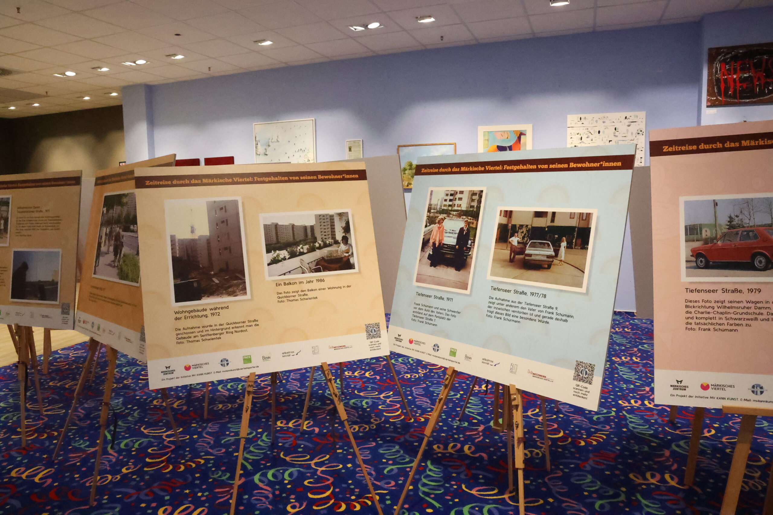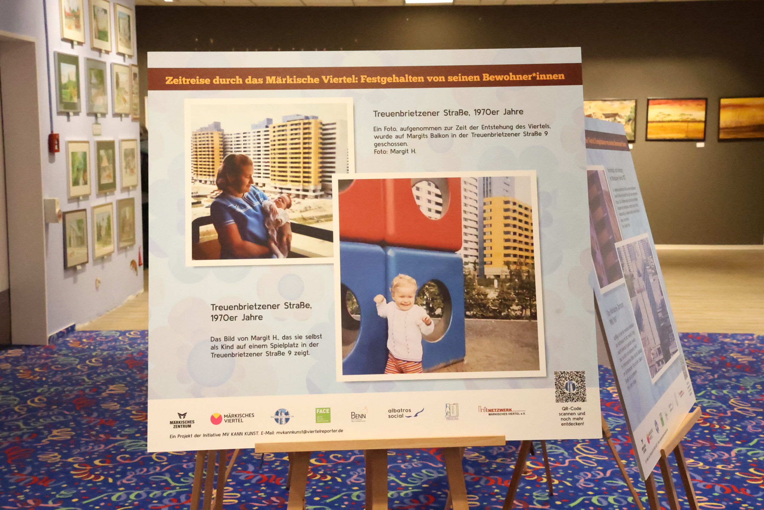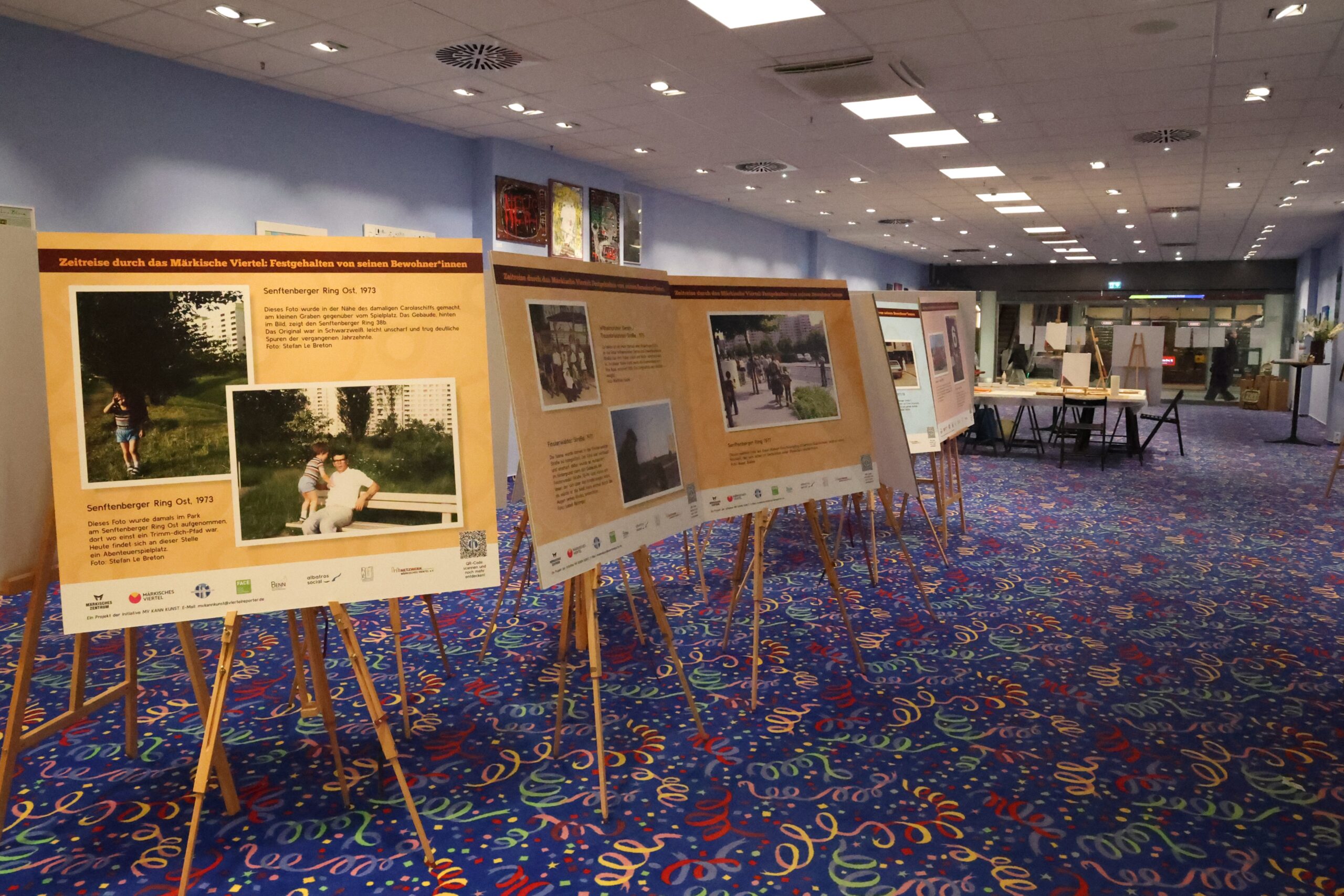 Unter dem Titel „Zeitreise im Märkischen Viertel“ werden im gleichen Raum restaurierte Fotografien gezeigt, die von Menschen aus der Nachbarschaft eingereicht und über Jahre gesammelt wurden. Verblasste Aufnahmen wurden digital restauriert und teils koloriert, sodass sie nun in neuem Licht erstrahlen und Erinnerungen an Kindheit, Nachbarschaft oder längst verschwundene Orte zurückbringen. So entsteht ein sichtbares Gedächtnis des Viertels, das Vergangenheit und Gegenwart miteinander verknüpft… alle Infos dazu findet ihr hier: https://xn--mrkischesviertel-vnb.de/eine-ausstellung-mit-restaurierten-leserfotos-aus-dem-maerkischen-viertel-analog-digital-und-dazwischen/