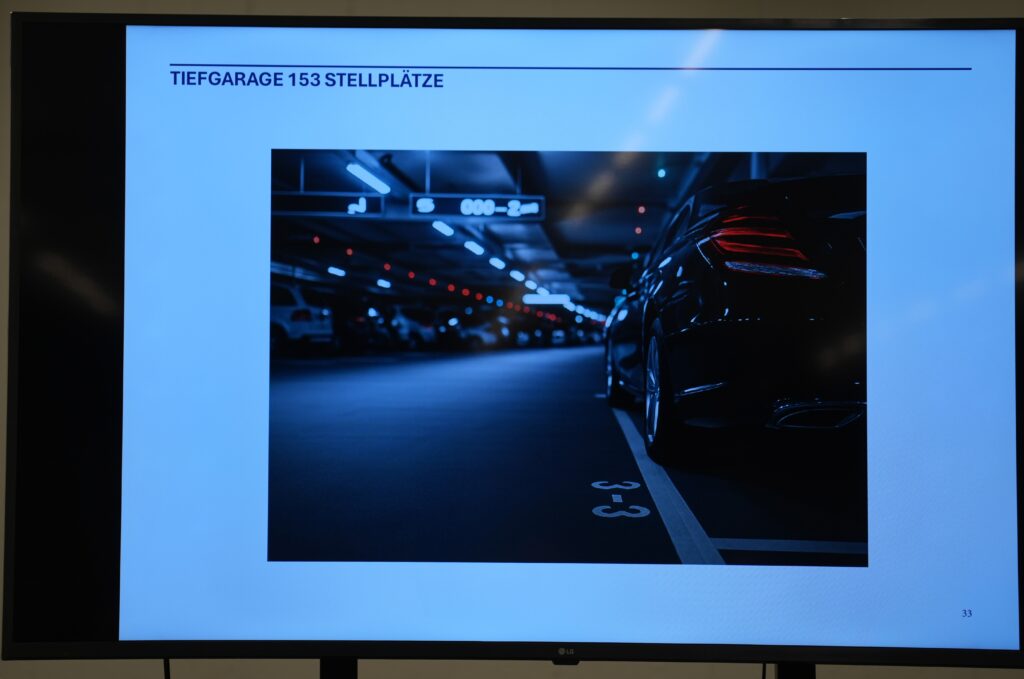 - eine eingeschossige Tiefgarage mit 153 Stellplätzen