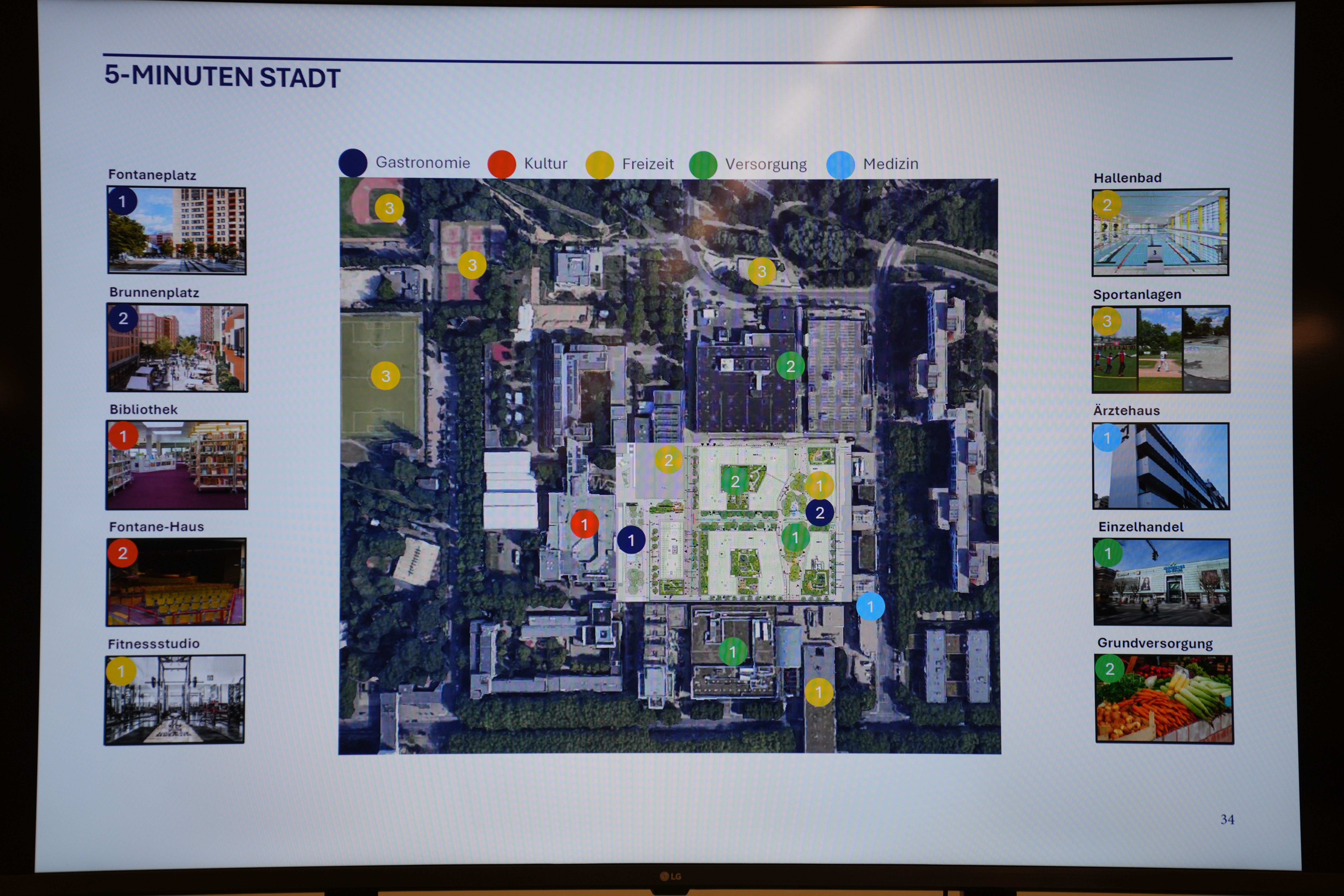 In den Fragen aus dem Publikum ging es auch um Jugendliche und soziale Infrastruktur. Die Planer haben erklärt, dass Spielflächen für verschiedene Altersgruppen vorgesehen sind, darunter auch Flächen auf Dächern und Wege, die als Spielstraßen genutzt werden können. Eigene Jugendräume oder ein zusätzliches Jugendzentrum sind bisher nicht Teil des Projekts, die Anregung wurde aber aufgenommen. Parallel dazu laufen Abstimmungen mit den Fachverwaltungen zu Kitas und weiteren Angeboten. Konkrete Zahlen wurden an diesem Abend noch nicht genannt.