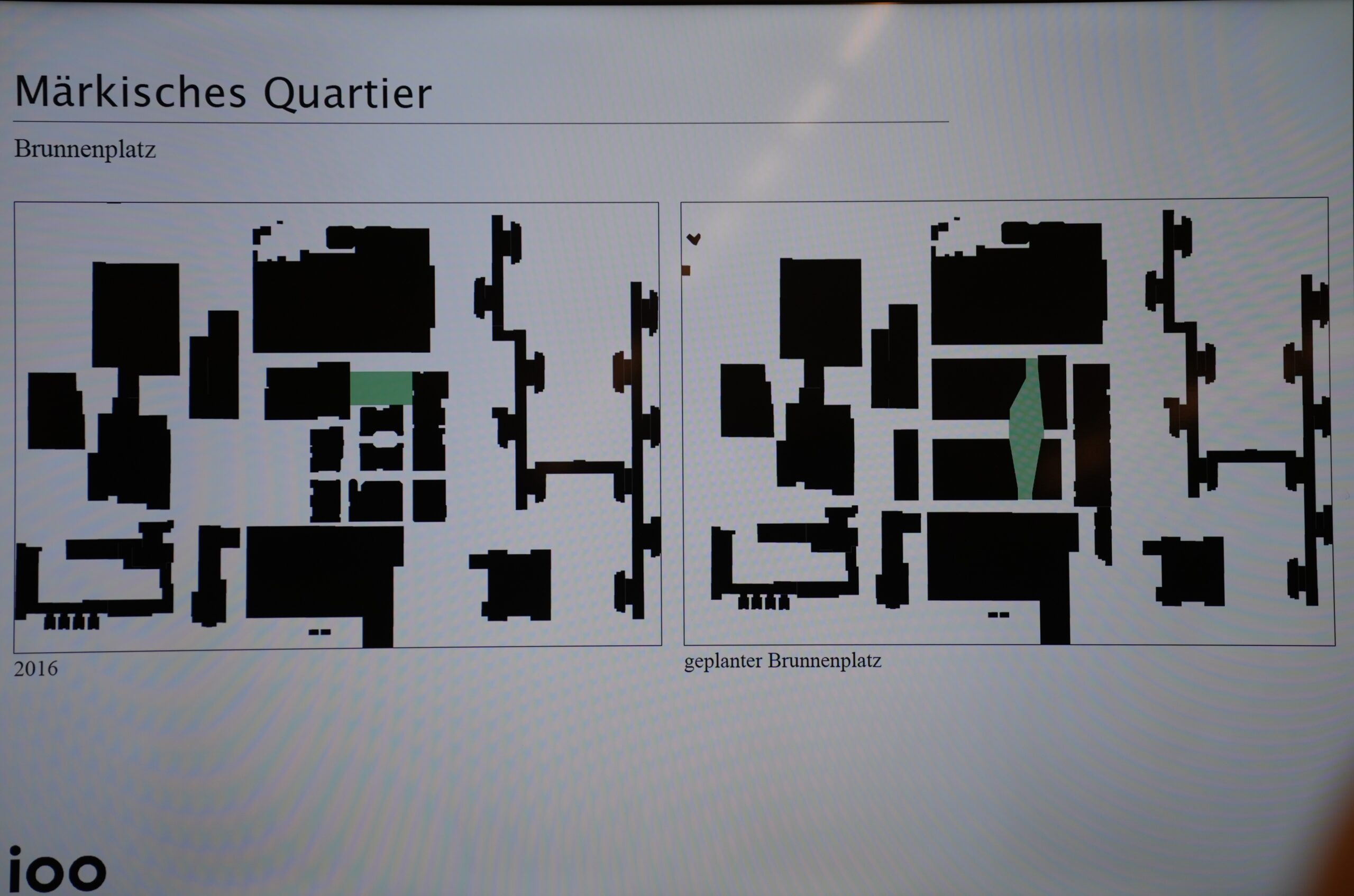 Der Platz ist nicht mehr irgendwo dazwischen, sondern bewusst in die Mitte des neuen Quartiers gesetzt. Er wird mit einer grünen Achse verbunden, die bis zum Fontaneplatz führt. So sollen Brunnenplatz, Fontanehaus, Schwimmbad und Märkische Zeile stärker miteinander verbunden werden als bisher.