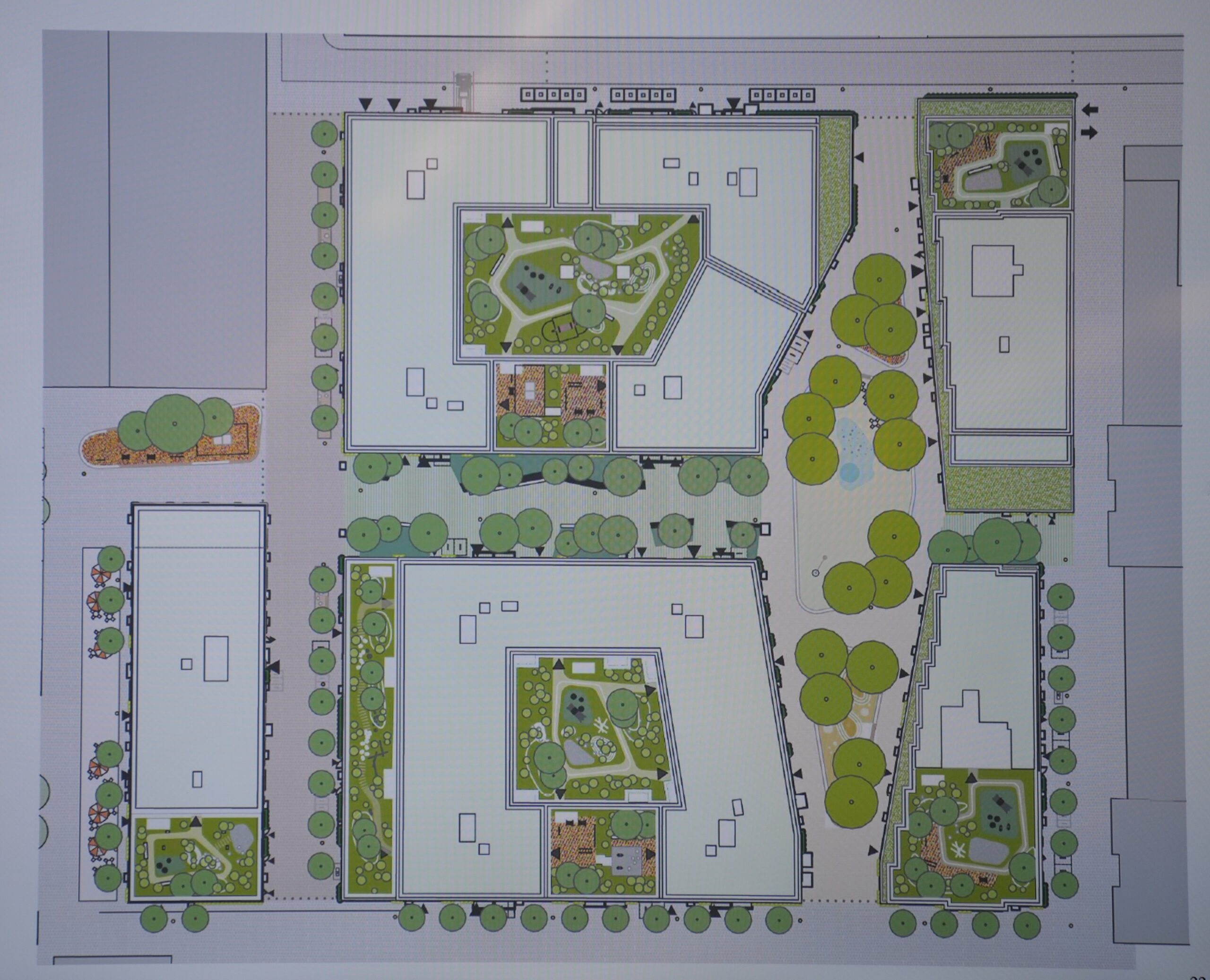 Beim Thema Grün wurde betont, dass trotz der Dichte des Projekts viel Bepflanzung vorgesehen ist. Es wird Bäume und Grünflächen in den Höfen geben, Spielbereiche für Kinder auf Dächern und Flächen, die so gepflastert sind, dass Regenwasser versickern kann und nicht komplett in die Kanalisation läuft. Die Planer sprechen von einem deutlich intensiver begrünten Bild im Vergleich zur heutigen Situation.