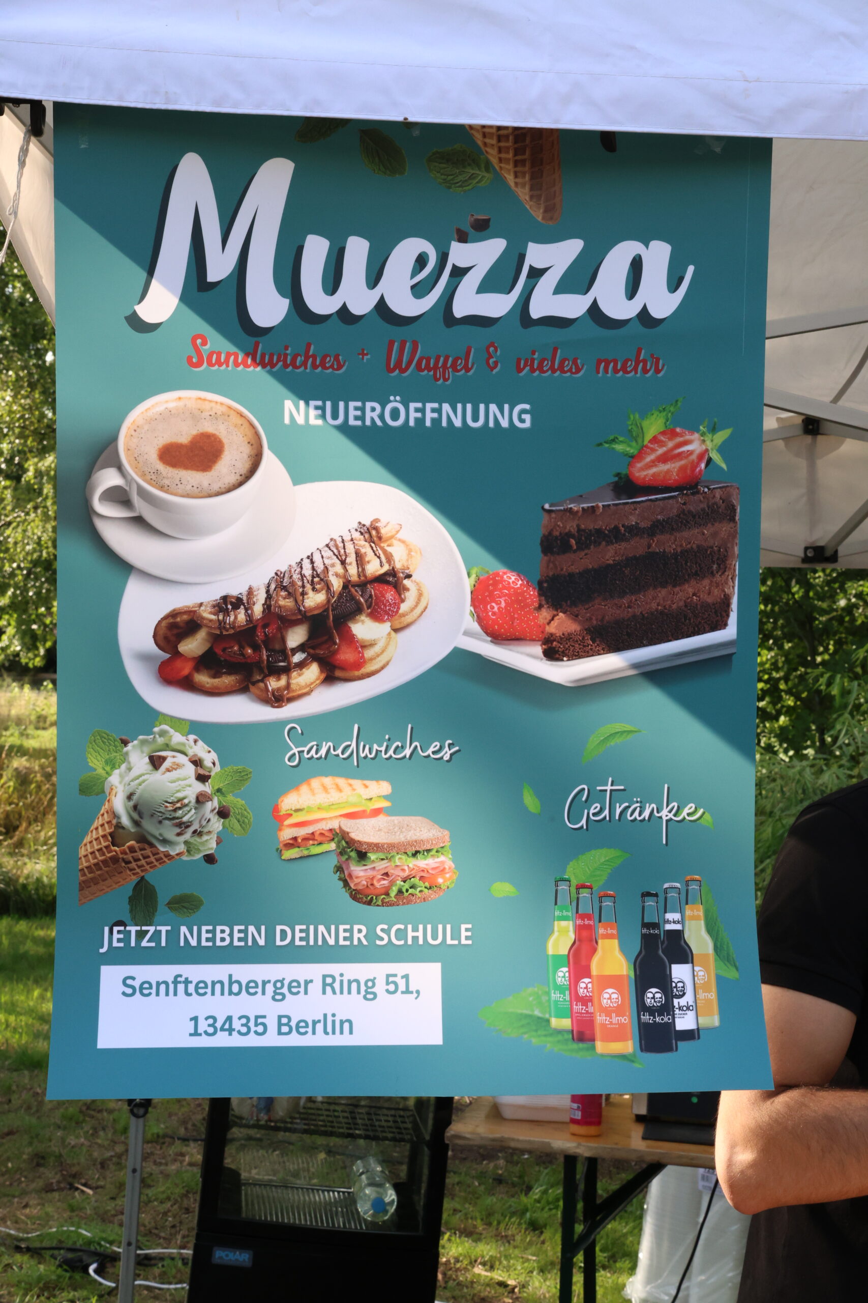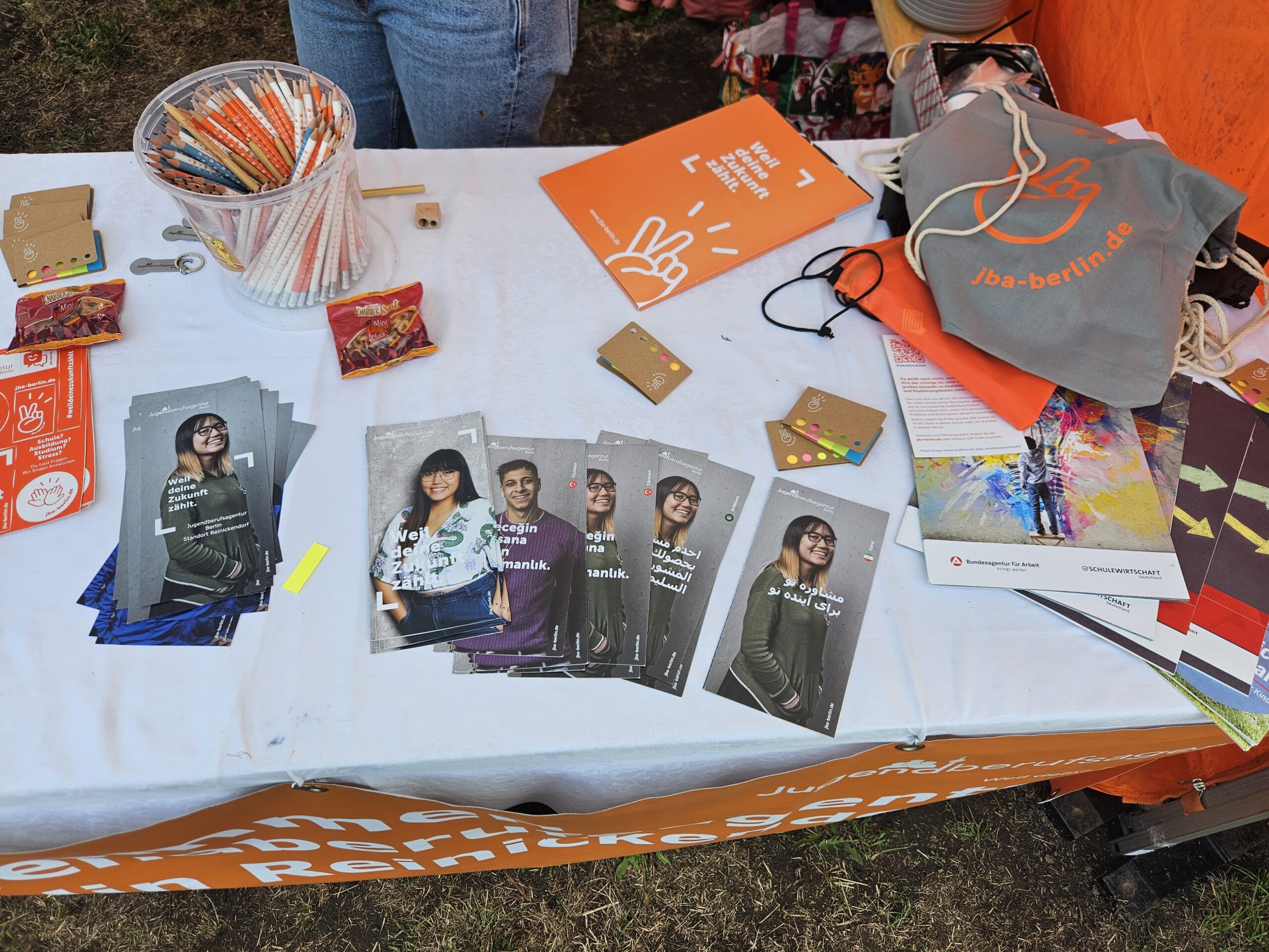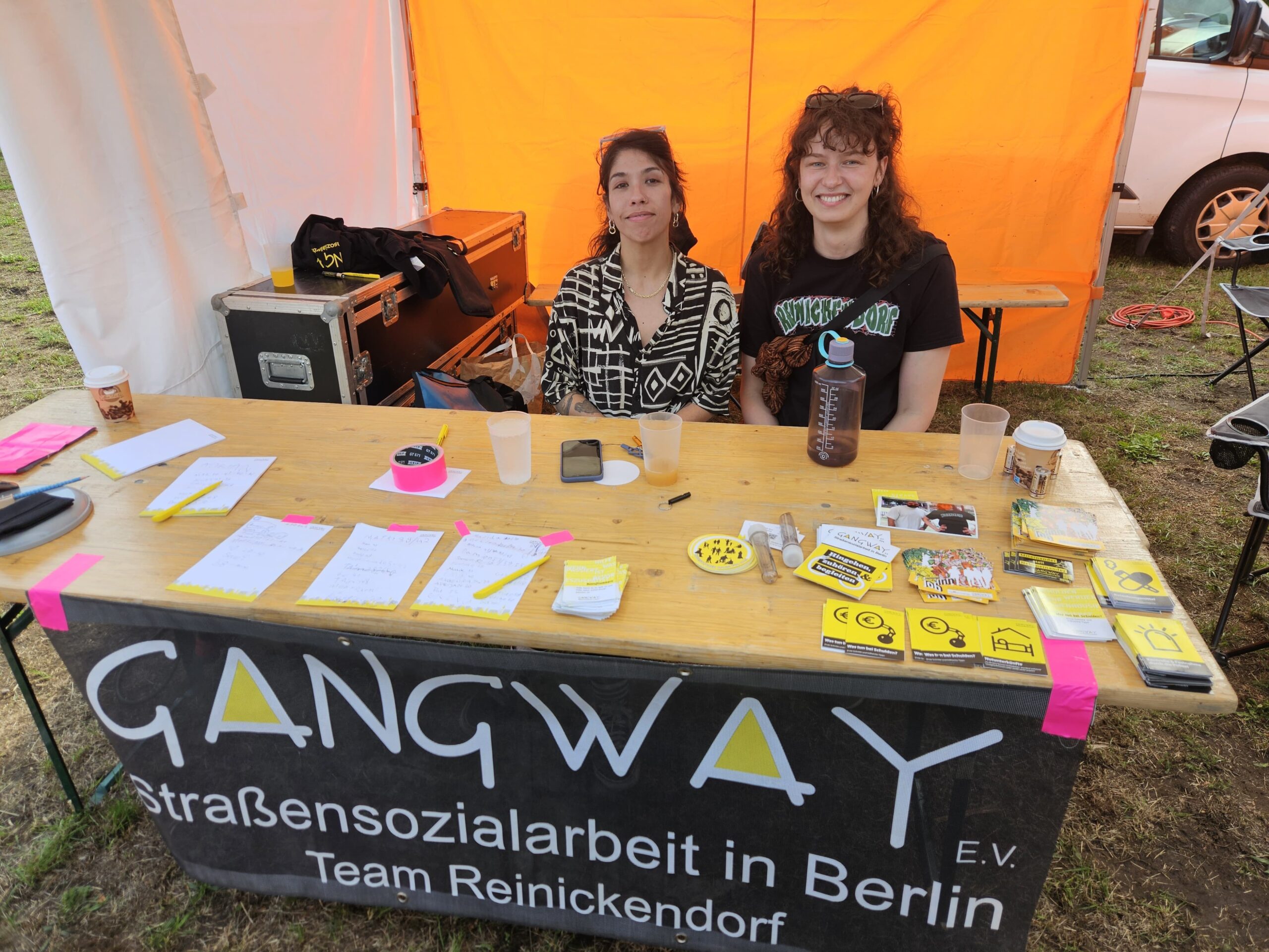 Doch es ging nicht nur um Musik. Rund um die Bühne reihten sich Stände: Mini-Pizza, Hähnchenkeule mit Reis, kandierte Früchte wie auf einem Rummel, kalte Getränke, für jeden Geschmack war etwas dabei. Dazu Infostände von der Berliner Polizei, den Kolleginnen und Kollegen von Gangway Straßensozialarbeit, der Jugendberufsagentur, vom Café Muezza und mehr. Sitzgelegenheiten luden zum Verweilen ein und machten aus dem Festival einen Ort des Austauschs und der Begegnung.